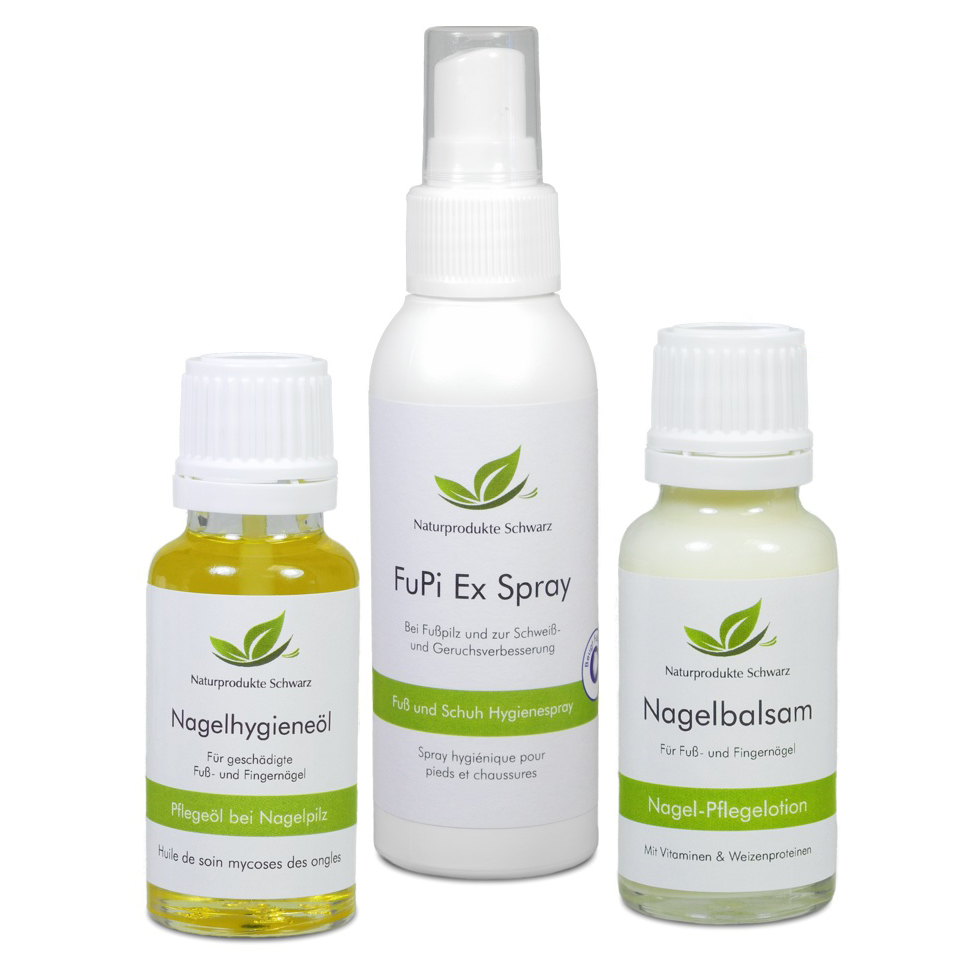 Nagelpflege-Set bei Nagelpilz Set-Inhalt – Nagelhygiene-Öl bei Nagelpilz, 20 ml – FuPi Fußpilz Spray, 100 ml – Nagelbalsam, 20 ml